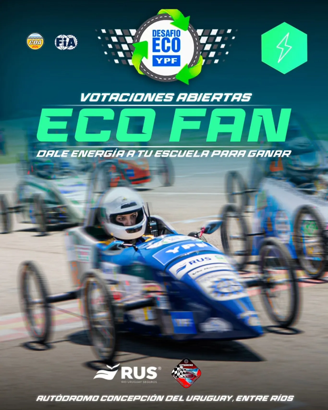 Con la participación de 132 autos representando a todas las provincias Argentinas, Concepción del Uruguay se prepara para ser sede el 8 y 9 de noviembre del Desafío Eco YPF y recibir a cientos de alumnos y docentes. Convocan a la comunidad a votar y apoyar a las escuelas de su preferencia.