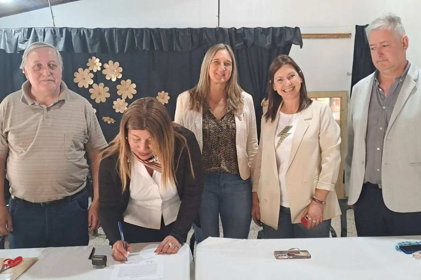 El acto administrativo se realizó en las instalaciones del establecimiento y contó con la presencia de Alejandra Elisabeth Sanabria, directora de la escuela; Silvia Noemí Faure, directora departamental de Escuelas; Alejandrina Bruno, Viceintendente de Viale; Osvaldo Francovich, jefe zonal de Paraná Campaña; y Miguel Ángel Durán, del equipo técnico de la Dirección General de Arquitectura y Construcciones.