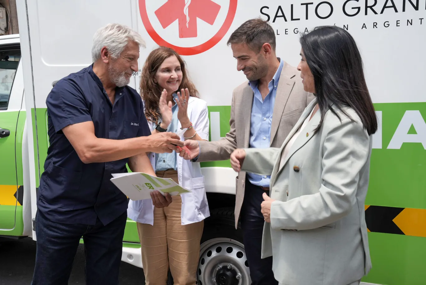 La provincia continúa con la distribución de las ambulancias provistas por la delegación argentina ante la Comisión Técnica Mixta (CTM) de Salto Grande. En este sentido, este jueves la vicegobernadora Alicia Aluani junto al ministro de Salud de Entre Ríos, Daniel Blanzaco, realizaron la entrega de una nueva unidad de traslado al hospital San Blas de Nogoyá.